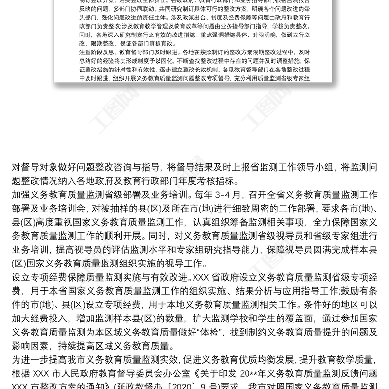 工圖網(wǎng)提供有關(guān)國家義務(wù)教育質(zhì)量監(jiān)測反饋問題整改方案供會員免費下載。更多精彩黨課PPT素材,盡在工圖網(wǎng)。