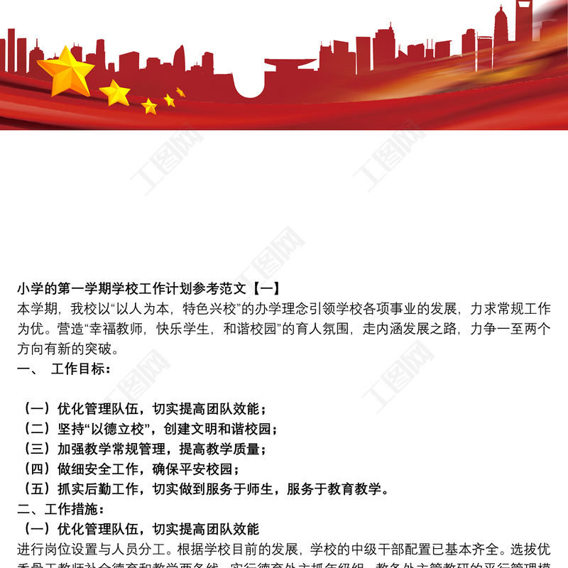 工圖網(wǎng)提供小學(xué)的第一學(xué)期學(xué)校工作計(jì)劃參考范文供會(huì)員免費(fèi)下載。更多精彩黨課PPT素材,盡在工圖網(wǎng)。