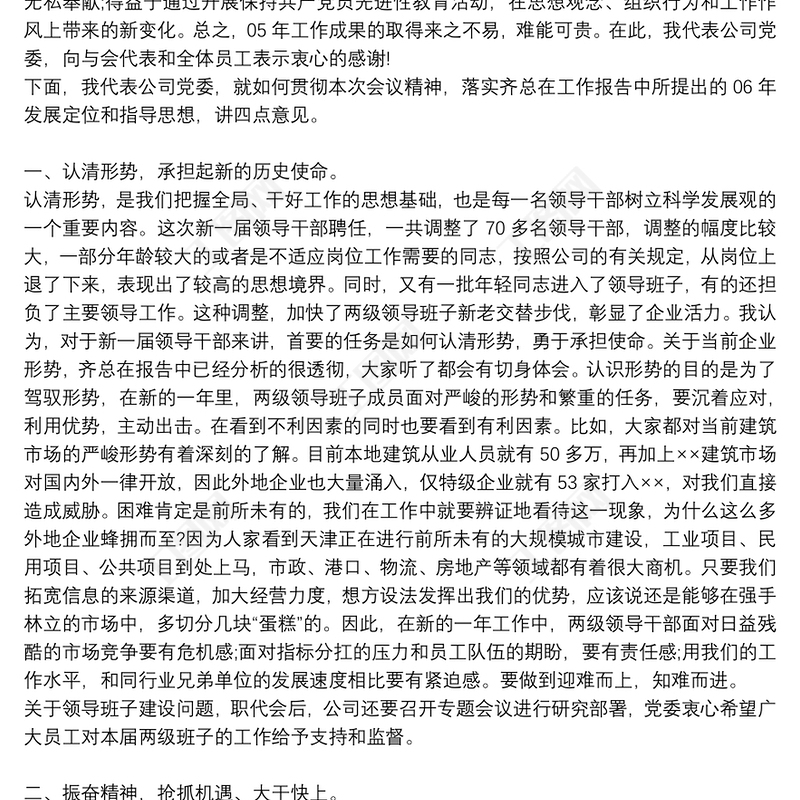 黨委書記職代會(huì)講話稿