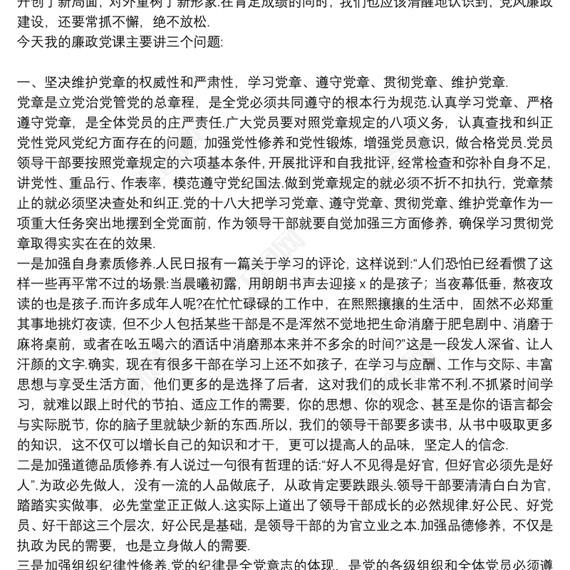 2021黨組黨風(fēng)廉政黨課講稿參考范文 Array