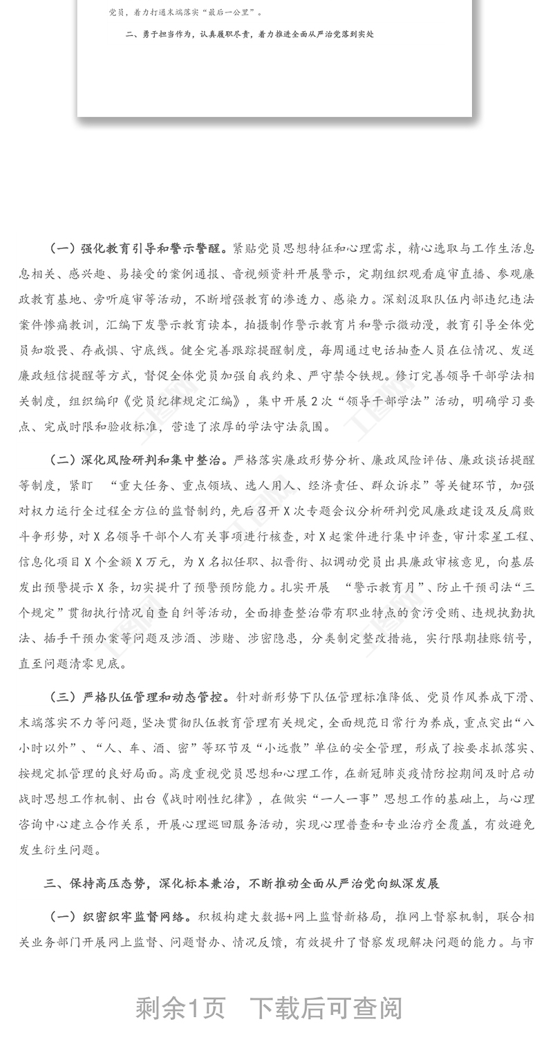 2021黨支部上半年紀(jì)檢監(jiān)察工作總結(jié)2021年建黨100周年安保維穩(wěn)工作總結(jié)2021黨支部上半年黨史教育工作總結(jié)2021工作專班工作總結(jié)2021年建黨100周年支部黨建工作總結(jié)中學(xué)2021年意識形態(tài)工作總結(jié)2022藍(lán)色扁平大氣工作總結(jié)年終總結(jié)工作匯2022年三年行動整治工作總結(jié)紀(jì)檢監(jiān)察支部2021年工作總結(jié)2021建黨一百周年安全維穩(wěn)工作總結(jié)2021交通運輸局建黨100周年大慶期間消防安全工作總結(jié)2021年意識形態(tài)第一季度工作總結(jié)社區(qū)2021年上半年意識形態(tài)工作總結(jié)2023學(xué)校黨建工作季度工作總結(jié)2023紀(jì)檢監(jiān)察工作總結(jié)新時代中國特色社會主義思想2023紀(jì)檢干部教育整頓工作總結(jié)