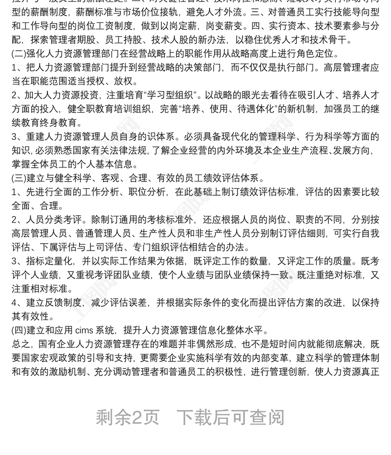 國有企業(yè)人事管理調研報告