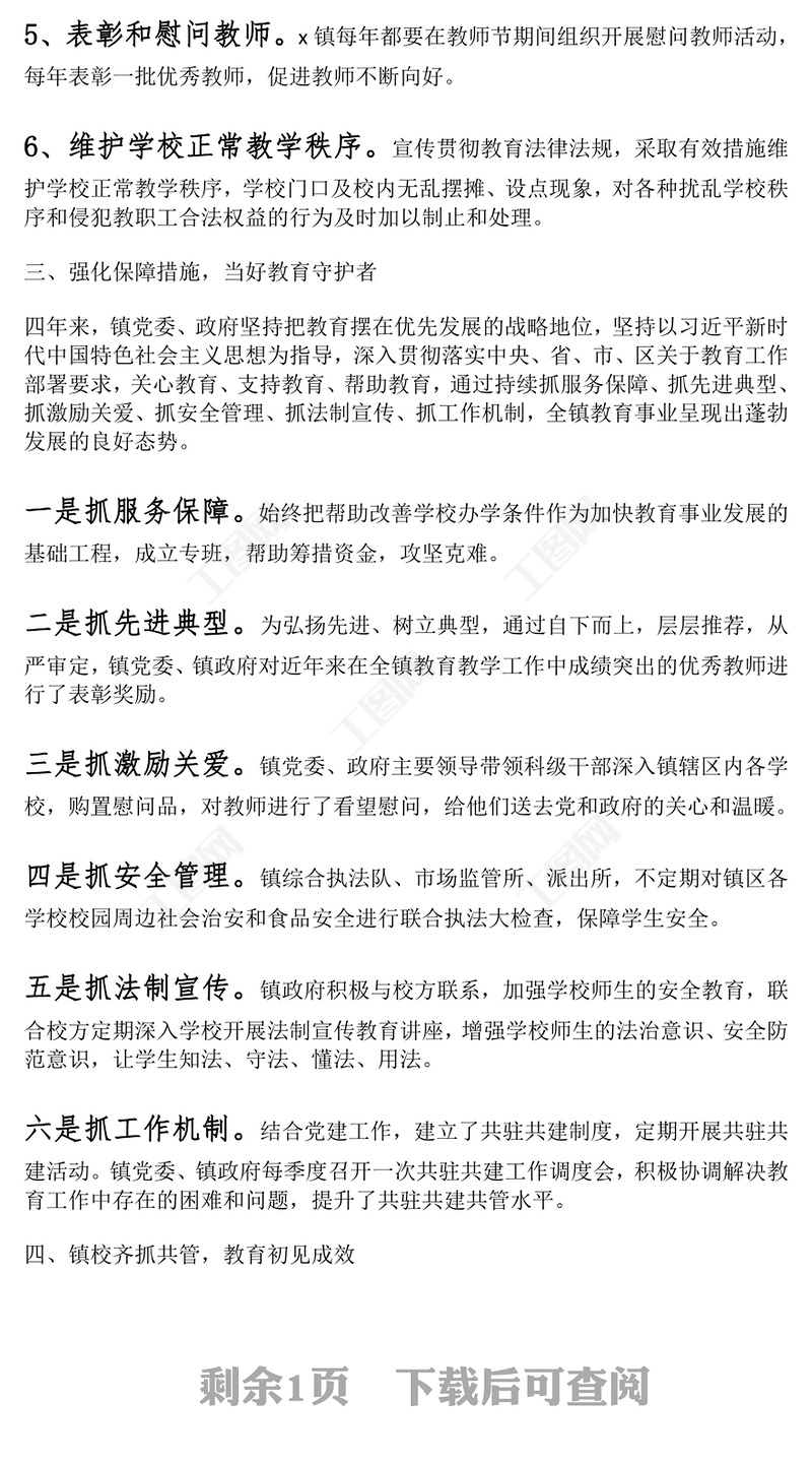 工圖網(wǎng)提供鄉(xiāng)鎮(zhèn)促進(jìn)教育發(fā)展履行教育職責(zé)工作報(bào)告范文供會(huì)員免費(fèi)下載。更多精彩黨課PPT素材,盡在工圖網(wǎng)。
