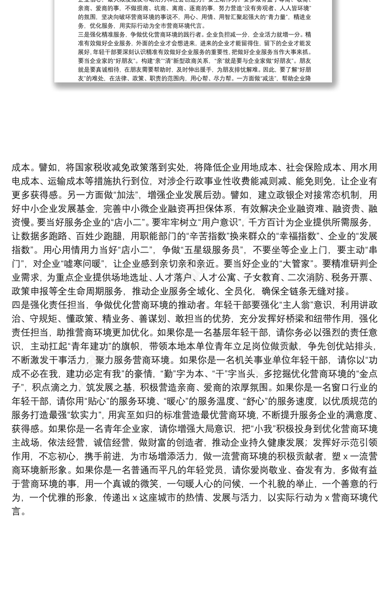 > 交流研討座談 > 在2022年全市年輕干部?jī)?yōu)化營(yíng)商環(huán)境座談會(huì)上的講話.DOCX 【圖片、文字、動(dòng)畫均可編輯】