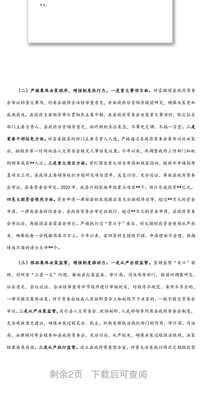 全縣“三重一大”決策制度落實(shí)情況報(bào)告
